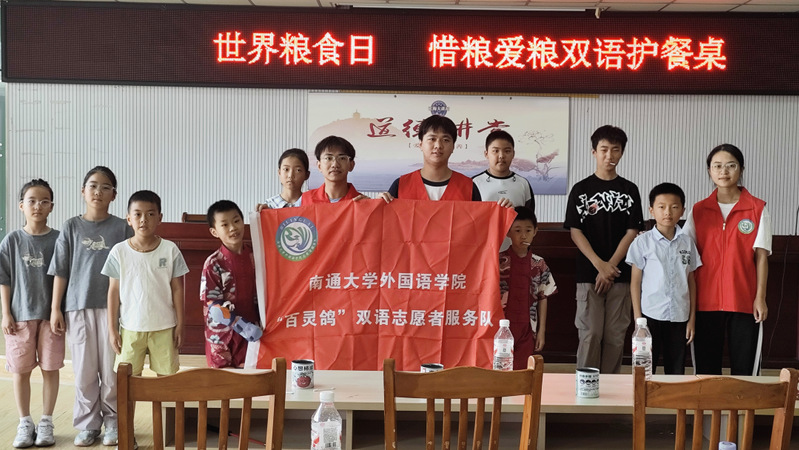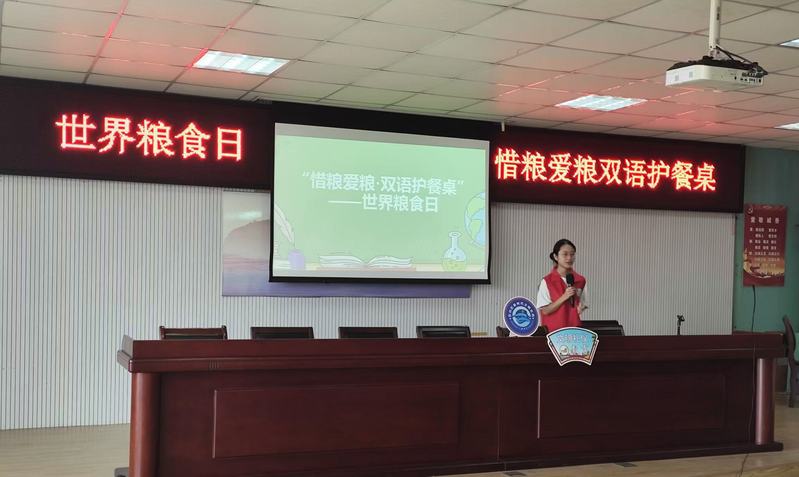 为迎接第45个世界粮食日,引导社区新业态子女更好地树立珍惜粮食、勤俭节约的意识,2025年10月12日,外国语学院 “百灵鸽” 双语志愿者服务队联合雷锋精神研究社,赴鲍家桥社区开展 “惜粮爱粮,双语护餐桌” 主题志愿服务活动。