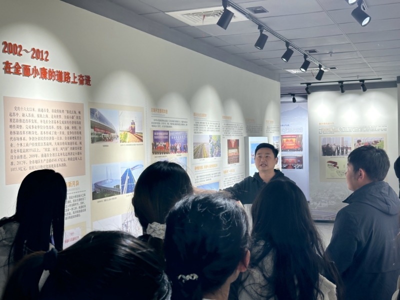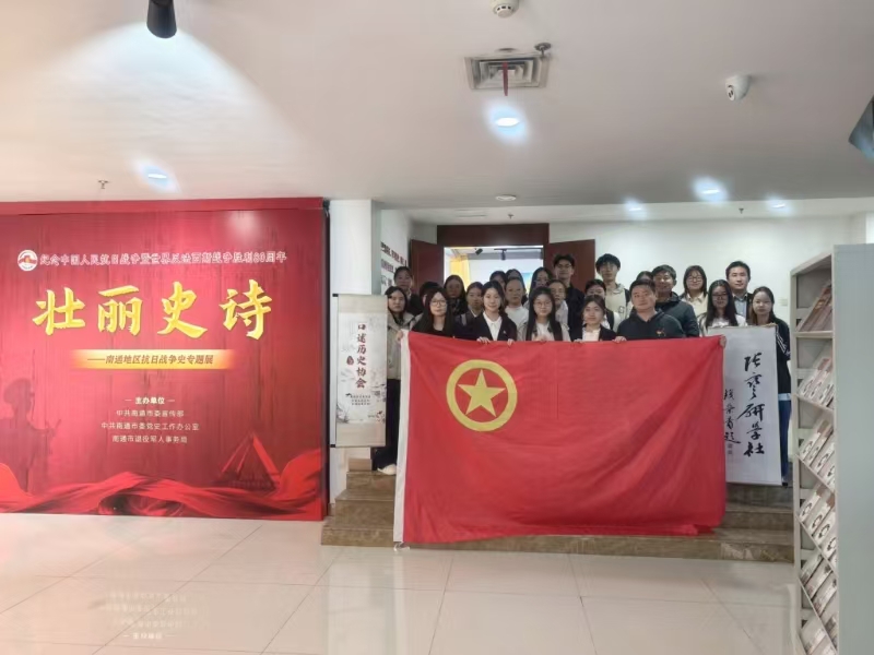 活动在团歌声中拉开帷幕。团支书刘蜜儿作开幕动员,张若愚寄语青年学子认真学习“五史”,从历史中汲取信仰力量。红色文献《大浪淘沙——红报里的中国共产党党史》成为共读载体,在“师生共读”环节,师生代表从不同角度分享感悟,解析红报价值,畅谈红色基因的当代转化。“以赛促学”环节气氛热烈,党史知识抢答加深了学习印象。随后,全体师生参观《壮丽史诗——南通地区抗日战争史专题展》,张若愚现场讲解,带领大家重温南通军民顽强抗战的历程。活动最后,师生在恬园“一站式”学生社区开展座谈,交流研学体会。大家纷纷表示,要将家国情怀转化为实际行动,勇担时代使命。