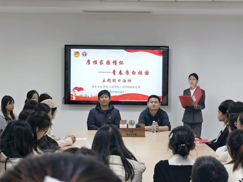 为厚植青年学子家国情怀,激发青春奋进力量,10月24日下午,南通大学历史文化学院(法学院)历师232团支部于南通方志馆举办“厚植家国情怀,青春告白祖国”主题团日活动。学院张謇研究院办公室主任张若愚、团委副书记马策出席,支部全体学生、学生党支部党员代表、南通大学口述历史协会及张謇研学社学生代表共同参与。