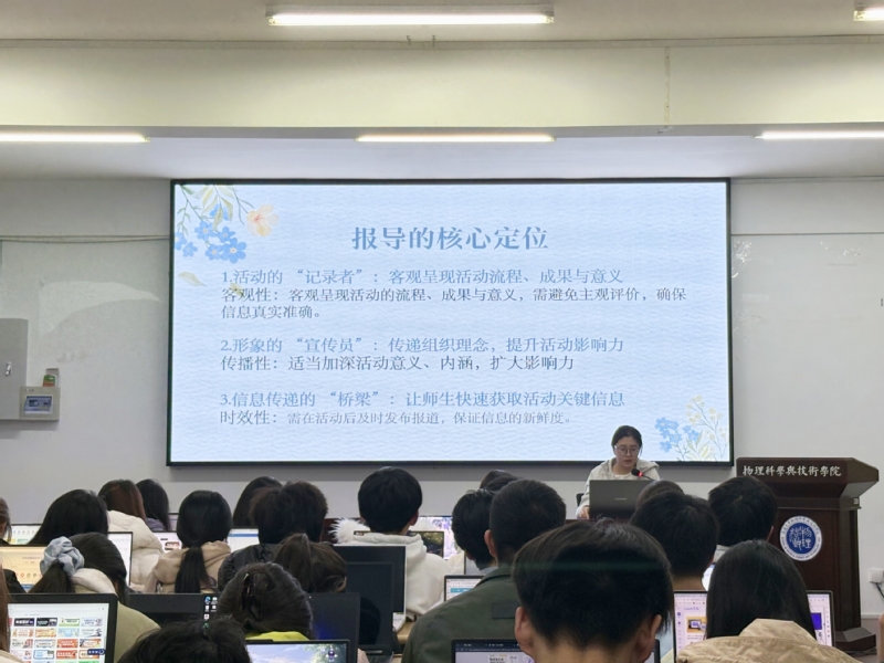 为进一步提升团学干部素养,强化团学队伍建设,11月30日晚,物科院团委举办专业技能培训会。本次培训聚焦于微推编辑、海报制作、报导撰写、摄影技巧四大模块。学院团学全体成员参与本次培训。