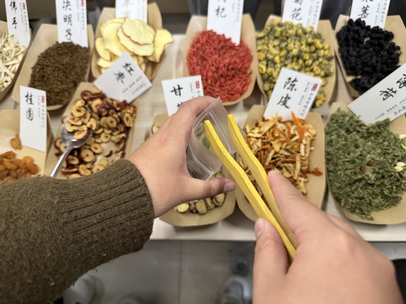 活动以中华茶文化与英语沉浸式交流为核心,环节丰富有趣。古韵暖饮”知“环节中,同学们用英语分享养生茶历史,参与知识抢答,在交流中传播茶文化;在手作环节里,大家化身“茶包设计师”,搭配红枣、茉莉、山楂等食材与英文贴纸,制作专属茶包;展示与交换环节中,同学们分享茶包创作理念,互赠茶包与介绍卡,在品茗中深化跨文化互动。