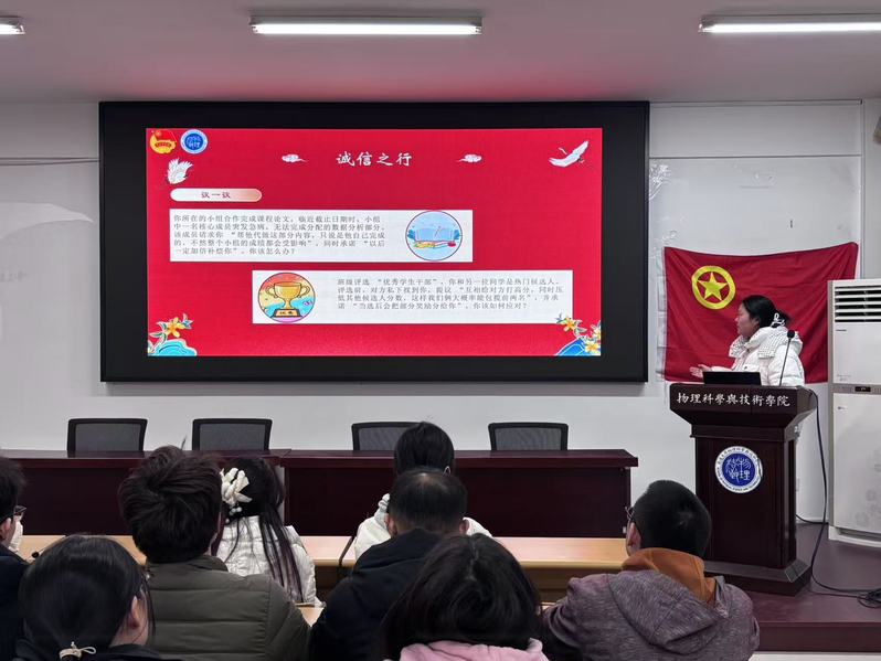 12月,物科院团委组织各团支部围绕“弘扬诚信美德,共建优良学风”主题展开学习,持续开展系列主题团日活动。今后,学院将不断深化教育,让诚信成为全体学生内心深处的价值坚守与行动自觉,为营造优良学风、构建诚信校园贡献力量。