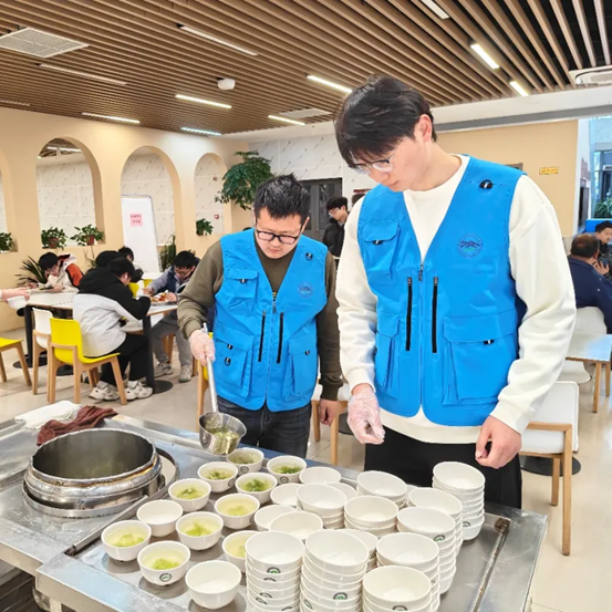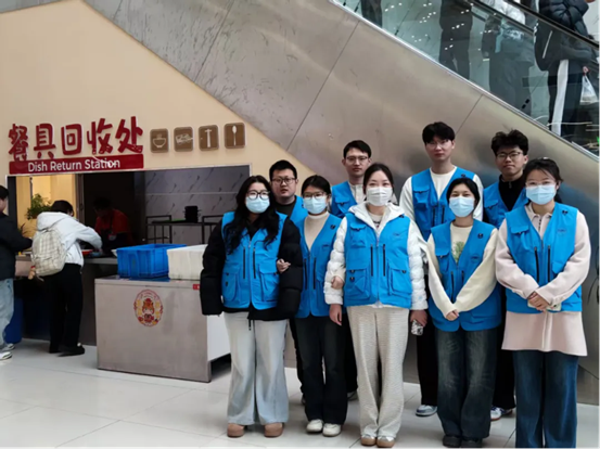 活动期间,志愿者们围绕食堂就餐秩序与环境维护,进行了合理分工与高效协同。在餐盘回收区,他们主动协助工作人员整理餐具,减轻了高峰时段的工作压力;在就餐区,志愿者们及时清理桌面、擦拭餐椅,用心维护整洁的用餐环境;在服务窗口前,他们耐心为同学们递送餐汤、引导排队,以周到细致的服务传递着校园温情。大家以忙碌的身影和真诚的笑容,生动诠释了“为人民服务”的奉献内涵。